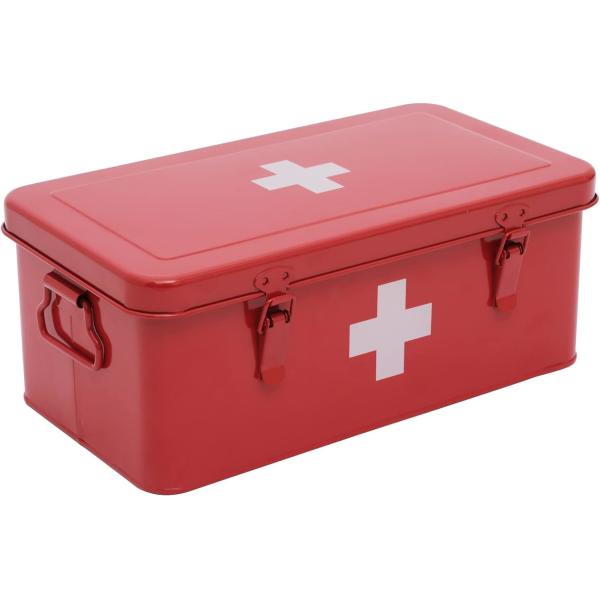 First Aid Kit Supplies Bin, Metal Medicine Storage Tin, First Aid Empty Box with Safety Lock Home Emergency Tool Set Images |